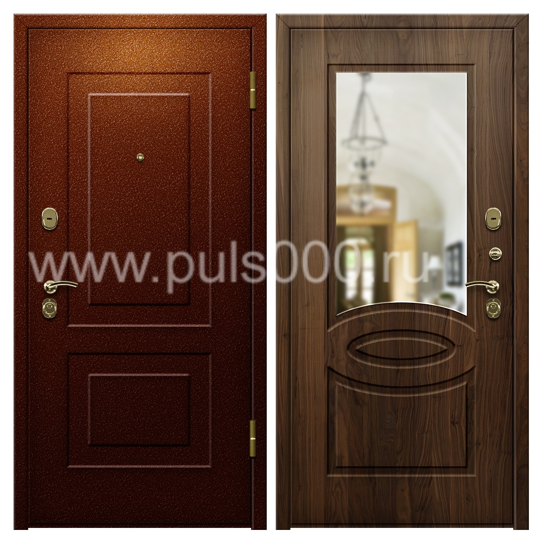 Основа конструкции — железный каркас из профильной трубы, усиленный ребрами жесткости. Стальная обшивка, обеспечивающая высокий уровень взломостойкости, с обеих сторон покрыта декоративными панелями из: