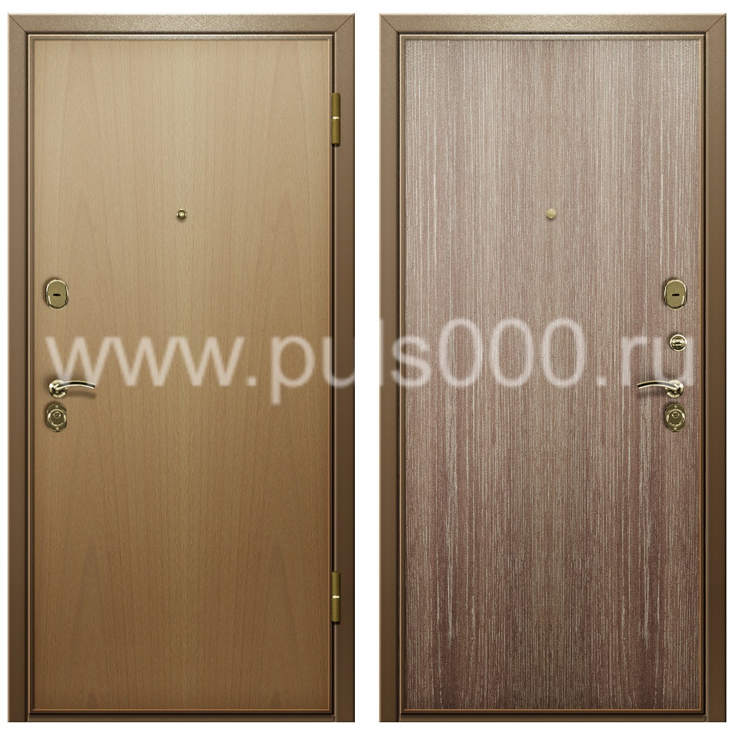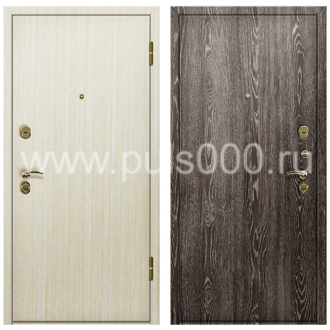 Наружная поверхность окрашивается порошковым составом способом напыления в любой цвет, по желанию заказчика. Также для отделки используются ламинат, экокожа, винорит и другие декоративные материалы. Железный лист толщиной от 2,2 мм обеспечивает требуемую жесткость конструкции и взломостойкость.